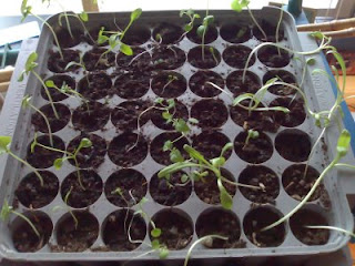De ser unektelig spinkle ut, men i god tro pusler jeg om dem med litt dusjing, snur dem i forhold til lyset hver dag osv. osv. Dette skal da bli basilikum, oregano, persille, sitronmelisse og noen sommerblomster. I et annet kar har jeg nå plantet blomkarse og erteblomster. Så får vi se hva jeg ender opp med til syvende og sist.