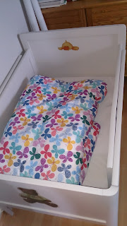 Tilføyelse - etter å ha testet shortsen en dag viser det seg at den er for stor. Jeg har nå forkortet den ved å klippe av 9 cm på lengden, ved å sy 2-3 cm "dypere" søm midt under, utjevnet til null ved linning foran og ved midt på sømmen bak. Mønsteret må tilpasses ganske mye for å få en mer tettsittende modell. Men fortsatt er shortsen behagelig å gå med :-)