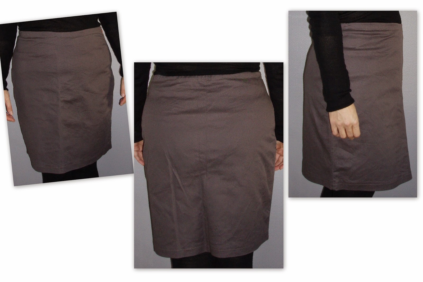 Ny utgave av samme skjørt. Denne gangen i kraftigere bomullsstoff, tilnærmet denim. Denne gangen ble det ingen god match av stoff og mønster i første omgang. Jeg sydde først skjørtet identisk med første utgave og prøvde det i et par dager. Deretter klippet jeg det av i midjen foran, samt øverst i sidesømmene og satte inn et glidelås i den ene siden. Nå passer skjørtet fint og er behagelig på.