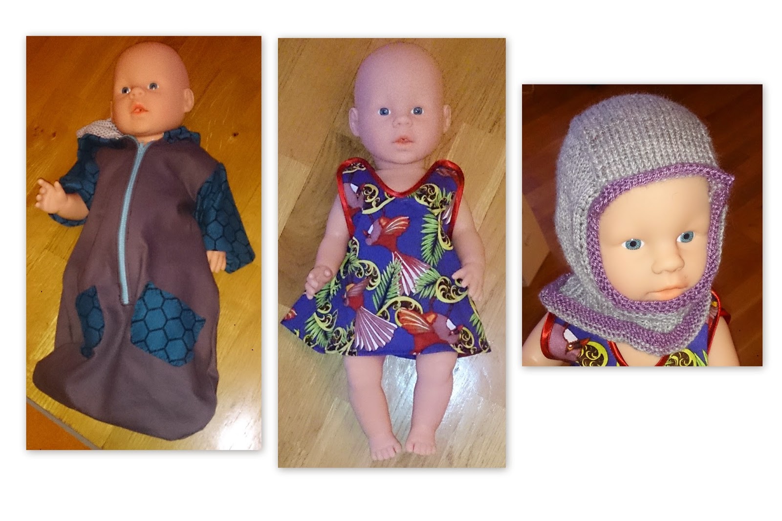 Rett før jul ble dukken morsom å leke med. I og med at den nå må være med overalt er det greit at den også er kledt for det :-).